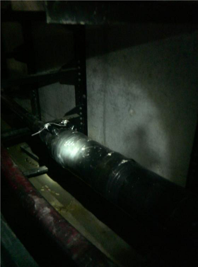 工作人員刮掉半導體層繼續(xù)耐壓測試,合格,確定故障就在此處后進行了包扎處理。